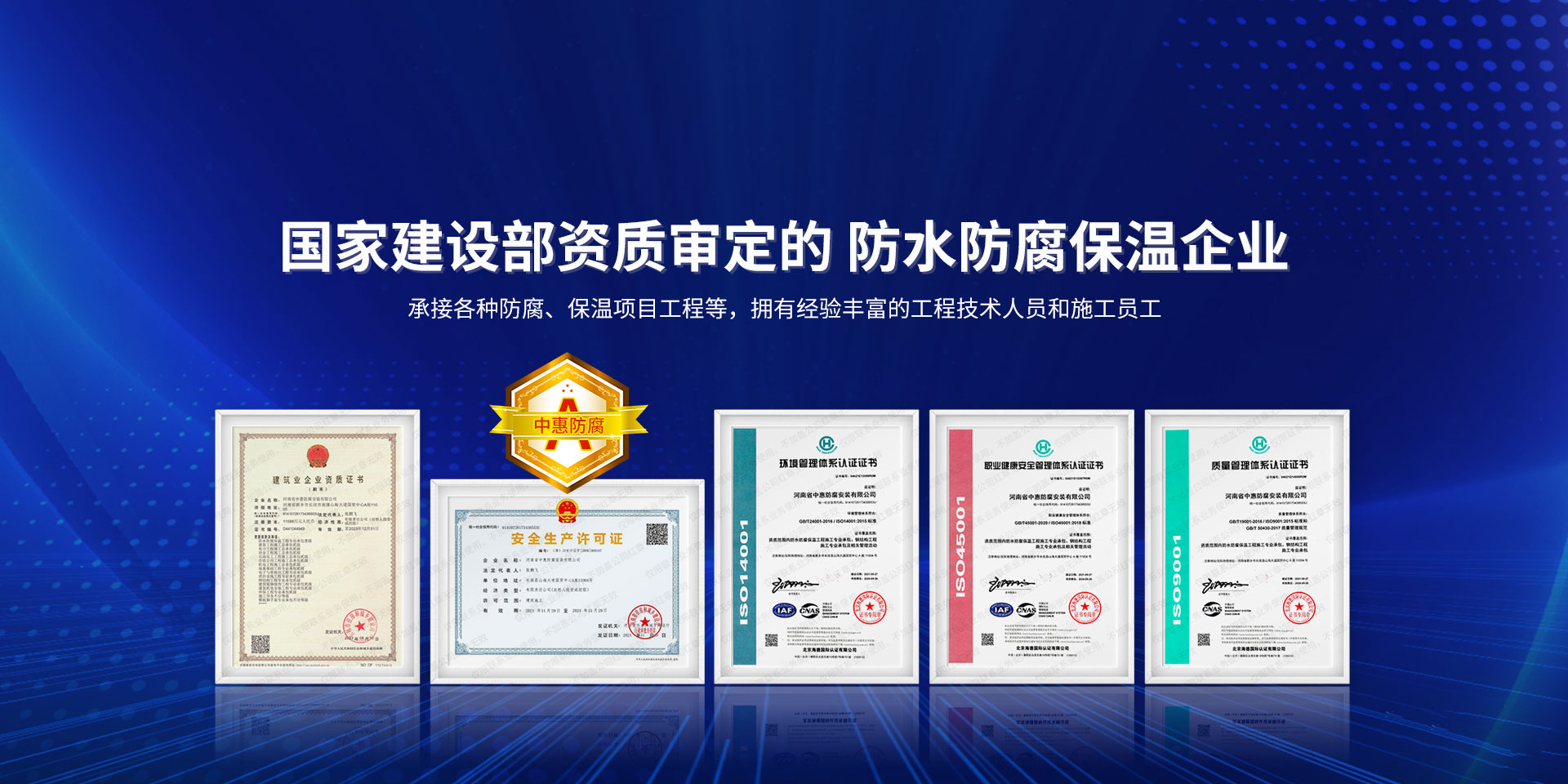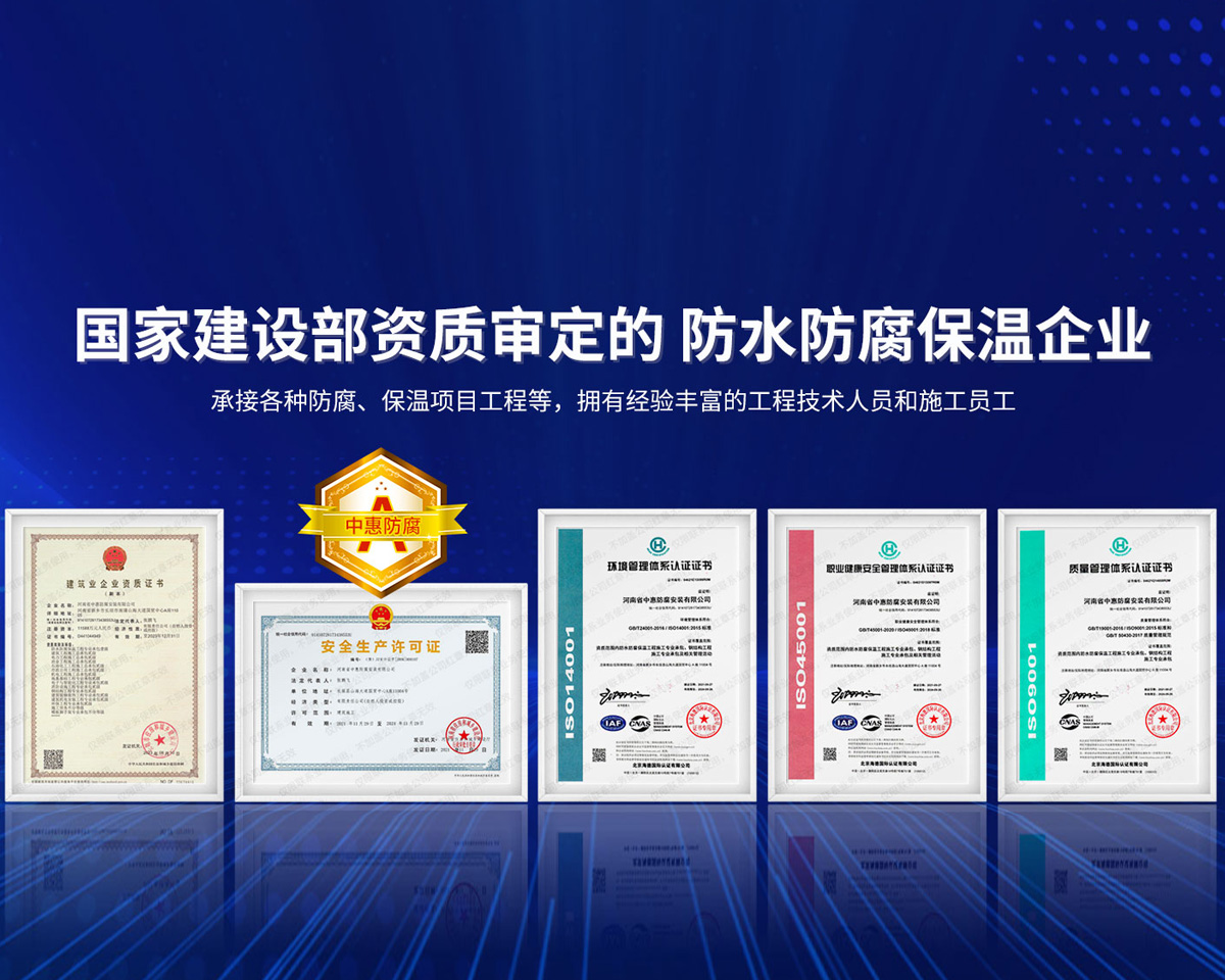 公司經營范圍:防水防腐保溫工程;消防設施工程;建筑裝修裝飾工程;建筑機電安裝工程;電力工程;建筑工程;石油化工工程;工業清洗工程;油罐清洗工程;鋼結構工程;環保工程;模板腳手架工程;電纜防火封堵、防污閃噴涂、外墻外保溫工程;各類施工勞務作業;設備維修、船舶鉚焊、涂裝;電力工程材料、建材、防水材料、防火材料、防腐保溫材料銷售,并相繼通過了GB/T19001-2008idtISO9001:2008GB/T50430-2007質量管理體系認證證書。GB/T24001-2004idtISO14001:2004環境管理體系認證證書。GB/T28001-2011idtOHSAS18001:2007職業健康安全管理體系認證證書。公司是中國防腐蝕于防護協會、中國施工企業管理協會、電力協會和中國鋼結構防水協會會員單位。 公司的經營業務涵蓋了石油、化工、電力、冶金、煤炭、船舶、國防、燃氣、水利、環保、交通運輸、航空及國防軍工和輕紡市政等行業的防腐保溫絕熱設備。鋼結構安裝、防火、防水、金屬噴鍍、聚脲噴繪、陰極保護、防滲透堵漏、玻璃鋼及各種磚版材料襯里、橡膠襯里、煙氣硫和耐酸溶劑腐蝕等工程施工。公司連續十年榮獲“省市先進施工企業”“安全生產先進單位”“重合同,守信用企業”和“AA***資質企業”的稱號。2000年被命名為市級文明單位,2002年被國家工商行政管理局命名為“重合同,守信用的企業”、被中國工業防腐蝕技術協會命名為“防腐蝕企業,能源節約及環境保護領域有豐富的經驗和***的業績。工程一次交驗合格率100%。其中攀枝花鋼鐵公司煉鐵廠四號高爐及熱風爐防腐工程、上海寶鋼公司煤氣柜防腐工程、撫順石油一廠裝置防腐項目、齊魯石化公司稀烴廠高塔防腐工程、吉林化學工業公司煉油廠油罐防腐工程、天津石化熱電廠六號爐頂棚聯絡管保溫工程、大慶油田(太倉)力神泵業工程、中國化學工程第十一建設工程、中原油田勘探局工程、中國石化銷售有限公司華北分部、魯皖輸油管道工程、貴州開磷息烽合成氨工程、陜西黃陵煤化工程、中國石油天然氣西部管道塔里木輸油工程、邯鋼集團邯寶鋼鐵公司煉鐵工程、德州供電工程、吉寶(南通)船廠工程,偃師華潤熱力工程、鄭州熱力總公司。 河南省中惠防腐安裝有限公司愿以豐富的施工經驗,***的技術,***的設備,***的管理,***的服務,竭誠為國內外廣大的用戶提供***滿意、******的工程作品。 我公司愿與國內外同仁一道,團結協作,共同推進防腐蝕行業發展! 公司地址:河南省長垣縣建設路北段360號 固定電話:0373-8866488 郵編:453400 網址:http://www_zhff_com_cn.dgxieneng.com